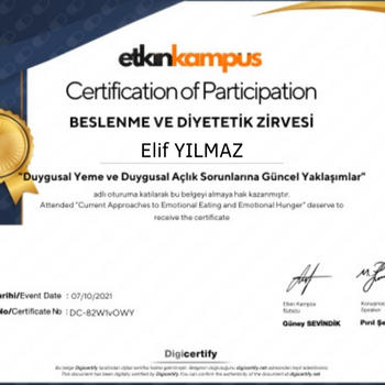 Merhaba ben diyetisyen Elif Yılmaz. yılı Mayıs Üniversitesi mezunuyum.Amacım sağlıklı beslenmeyi keyifli hale getirerek beslenmede dengeyi kurmanıza yardımcı olmak.Online olarak "sınırları aşalım" mottosuyla danışanlarıma hizmet sağlamaktayım.Detaylı bilgi için telefondan iletişime geçebilirsiniz.
