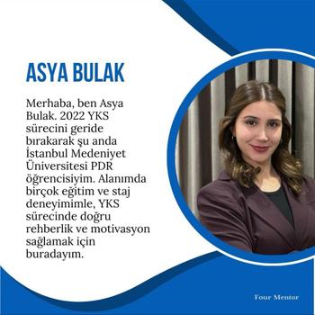“Four Mentor” ekibi olarak, YKS sürecinde öğrencilere hem akademik hem de psikolojik destek sunmayı amaçlıyoruz. Her öğrencinin ihtiyaçları farklı olduğundan, onlara özel stratejiler geliştirerek başarılarını en üst düzeye çıkarmayı hedefliyoruz. Amacımız: YKS sürecinde öğrencilere bireysel rehberlik sunarak, onların güçlü yönlerini geliştirmelerine ve eksik olduğu alanlarda ilerleme kaydetmelerine destek olmak. Bizimle birlikte öğrenciler, sadece sınav için değil, gelecekteki akademik hayatları için de sağlam bir temel oluştururlar.