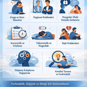 Psikolojik Danışman olarak amacım; danışanlarıma geçici rahatlama sunmak değil, kendilerini tanımalarını, duygularını anlamlandırmalarını ve hayatlarında kalıcı değişimler oluşturmalarını desteklemektir. Seans sürecinde: Yargılama ve etiketleme yoktur Gizlilik ve güven esastır Zorunda hissettiğin hiçbir şey yoktur Olduğun halinle kabul edilirsin Her danışanı tek bir kalıpla ele almam. Süreci, kişinin ihtiyacına ve yaşadığı duruma göre birlikte şekillendiririz. Çalıştığım Alanlar Kaygı (anksiyete) ve stres yönetimi Özgüven ve özdeğer problemleri Duyguları ifade etmede zorlanma Kararsızlık ve erteleme davranışları Tükenmişlik ve mental yorgunluk İlişki problemleri ve sınır koyma Düşünce kalıplarını fark etme ve yeniden yapılandırma Kendini tanıma ve farkındalık çalışmaları Psikolojik danışmanlık: Akıl verme süreci değildir Hazır çözümler sunmaz “Şöyle yap geçer” yaklaşımı içermez Bu süreç; doğru sorularla farkındalık kazanmayı, sorumluluk almayı ve değişimi adım adım inşa etmeyi amaçlar. Eğer gerçekten değişmeye niyetliysen, bu yolu tek başına yürümek zorunda değilsin.