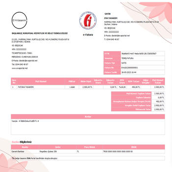 Müşterilerinizi hayran bırakabileceğiniz ve firmanız için prestij kaynağı olacak profesyonel görünümlü ve tüm Portallar ile uyumlu fatura tasarımları yaptırabilirsiniz. Kendi logonuzu, marka renklerinizi ve yazı tiplerinizi belirleyebilir, yüzlerce esnek fatura şablonundan birini seçerek deneyimli yazılımcı ve tasarımcılarımızın markanıza ait unsurların tutarlığını koruyarak yepyeni bir e-fatura tasarımı üretmesini sağlayabilirsiniz. Unutmayın markanızın kimliğini gösteren faturalar, bir sosyal medya gönderisinden çok daha fazlasıdır. Marka kimliğini belirleyen ve müşterilerinize sağladığınız tutarlı, kaliteli bir hizmettir. Yüzlerce fatura şablonundan birini seçip kişisel bir dokunuş ekletebilir, sıkıcı bir belgeyi müşteriniz için tutarlı bir marka deneyimine dönüştürebilirsiniz.