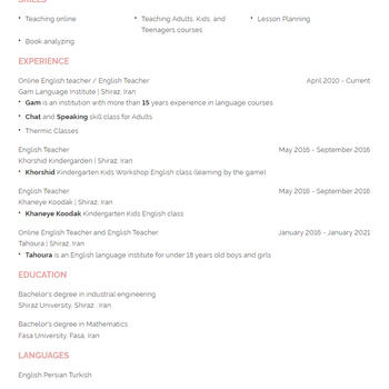 On yılı aşkın süredir dil öğretmeniyim. Türkiye, Rusya, Tayland, Filipinler, Vietnam, Afganistan ve İran'dan öğrencilere ders verdim.Ben çocukları severim.Sınıfım şiir, müzik ve oyunlarla dolu.