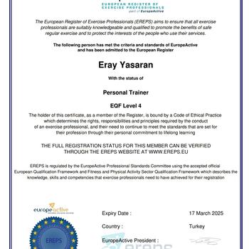 Fitness Movement Institue kursunda hem fitness eğitmenliği hem de personal trainer derslerimi aldım başarıyla tamamladım. Hem avrupa onaylı hem de federasyon onaylı bir antrenörüm.