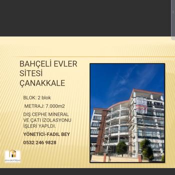 Çanakkale merkez ve ilçelerinde üstün hizmet anlayışı ile referans projelerimizle dış cephe tamirat tadilat yalıtım mantolama ve boyama işlemlerini itina ile yapmaktayız siz değerli müşterilerimizin memnuniyeti Bizim için her şeyden önemli. Çanakkale firmasıyız ve yaptığımız işin kesinlikle arkasında duran bir firmayız. Yaptığımız işler 10 yıl garantili olarak yapılmakta ve peşin ödemelerde indirim ayrıca müşteri üzerinde taksitli ödeme yapılabilmektedir