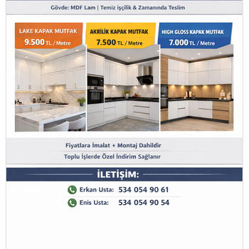 Müsait Hizmet Verenlerden 4 Mutfak Dolabı Yapımı Fiyat Teklifi Al, Karşılaştır.