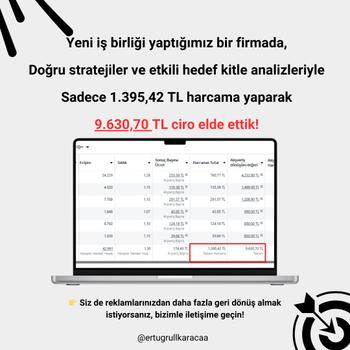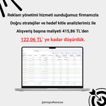 Hedef kitlenize ulaşmak ve satışlarınızı artırmak için profesyonel reklam yönetimi hizmeti sunuyorum. Doğru hedefleme ile daha fazla müşteriye ulaşın. Etkili içeriklerle dikkat çekin. Optimizasyon ve analizle reklam bütçenizi en verimli şekilde kullanın.