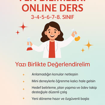 Esra Can | Fen Bilimleri Öğretmeni LGS hazırlık ,Ilk ve ortaokul duzeyinde fen bilimleri, turkce ve matematik dersleri veriyorum. Fenarasi kanalimizda deneylerle ve yeni nesil sorularla akilda kalici dersler anlatiyoruz. Deney temelli, anlaşılır ve eğlenceli konu anlatımları Yeni nesil soru çözümleri Öğrencinin seviyesine ve ihtiyacına göre özel program ve eğitim koçluğu. Derslerimde bilgiyi ezberletmek yerine; deneylerle, günlük hayat örnekleriyle ve sorularla kalıcı öğrenme sağlamayı hedefliyorum.