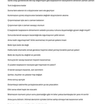 Merhabalar, ben Eylül, freelance metin yazarlığı ve editörlüğü yapıyorum.Metin yazarlığı, düzenleme, son okuma ,deneme ve kısa hikaye yazıyorum.Markalar için de özgün, ilgi çekici ve etkili içerikler hazırlıyorum.Sana zamanında teslimat, güvenilir iletişim ve özgünlük garanti ediyorum.Kaliteli ve samimi metinlerle fark yaratmak istersen, hemen bana ulaş! Çünkü seni kelimelerime büyülemek istiyorum.