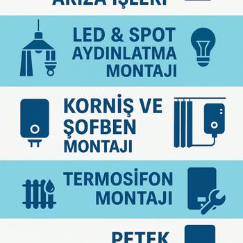 Kombi Tamir ve Bakımı, Petek Temizliği, Termosifon Tamiri ve Montajı, Şofben Montajı, Kornej Montajı, Ev Elektirik Arıza İşleri, Led Spot Montajı