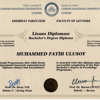 Psikoloji Lisans mezunuyum (2023), eğitimim boyunca; Erasmus+ değişim programı ile 4.5 ay Polonya’nın Torun şehrinde (Nicolaus Copernicus University) eğitim gördüm. Yine Polonya’da, Poznan şehrinde (Adam Mickiewicz University) 2.5 aylık 2 farklı Psikoloji Laboratuvarı’nda stajyer olarak çalışma fırsatı buldum. Bu süreçte birkaç farklı akademik çalışmaya katıldım, veri toplama-analiz ve yazım süreçlerinde de bu çalışmalara katkı verdim. 2022'de Çankırı Devlet Hastanesi Psikiyatri biriminde ve Çankırı Toplum Ruh Sağlığı Merkezi'nde 2 aylık staj deneyimlerim oldu. 2024'te Yüksek Psikoloji Akademisi(YPA)'nden BDT, ACT ve Çözüm Odaklı Terapi eğitimlerimi tamamlayarak sertifikalarımı aldım. Yaklaşık 3 buçuk ay süren, 100 saatlik (30+ saat süpervizyon destekli) BDT eğitimimi Onur Belgesi ile tamamladım. Şu anda online platformlar üzerinden, Uz. Klinik Psk. Sayın Nurdan ÖKTEN hocamın süpervizyon desteğiyle uygun fiyatlı Psikoterapi hizmeti vermekteyim. SERTİFİKALAR 1- Bilişsel Davranışçı Terapi (CBT) Uz. Klinik Psk. Nurdan Ökten 2- Kabul ve Kararlılık Terapisi (ACT) Uz. Psikiyatr Kıymet İmbat Taşkın 3- Çözüm Odaklı Terapi (SFBT) Prof. Dr. Veli Duyan 4- Klinik Görüşme Teknikleri Uz. Klinik Psk. Nurdan Ökten
