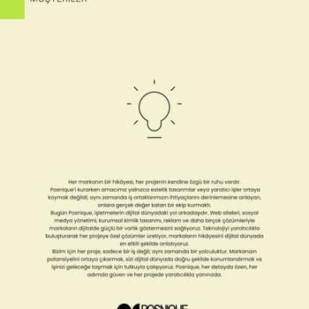 Posnique’de her işletme bizim için özeldir. Web tasarımı, sosyal medya yönetimi ve kurumsal kimlik tasarımıyla markanıza özel, şık ve etkili çözümler sunuyoruz. Küçük dokunuşlarla büyük fark yaratmak ve işletmenizi öne çıkarmak için yanınızdayız.