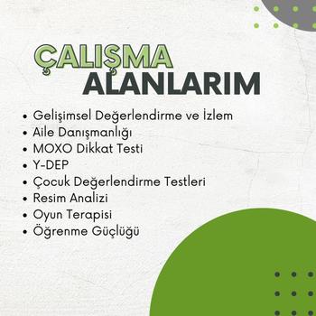 Merhabalar. İstinye üniversitesi çocuk gelişimi lisans mezunuyum. Pedagojik formasyonum mevcut. Özel eğitim rehabilitasyon merkezinde ilkokul, ortaokul ve lise düzeyindeki çocuklarla çalışmaktayım. Ağırlıklı olarak ilkokul düzeyindeki öğrenme güçlüğü ve disleksi ki çocuklarla çalışıyorum. Aynı zamanda normal gelişim gösteren ilkokul ve ortaokul öğrencilerimle de akademik olarak bireysel dersler vermekteyim. Bunların yanında çocuk gelişim ve izlem, çocuk değerlendirme testleri x DEHB, Y-DEP, MOXO, resim analizi gibi pek çok uygulayıcı sertifikalarım mevcut.
