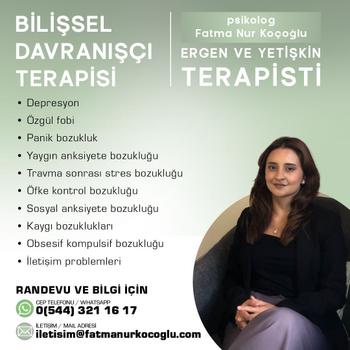 Depresyon, özgül fobi, panik bozukluk, travma sonrası stres bozukluğu, yaygın anksiyete bozukluğu, öfke kontrol bozukluğu, sosyal anksiyete bozukluğu, kaygı bozuklukları, obsesif kompulsif bozukluğu ve iletişim problemleri gibi bir çok psikolojik hastalıklar ile çalışmaktayım. bilişsel davranışçı terapisi eğitimi ile süpervizyon kapsamında terapilerimi gerçekleştirmekteyim. şuan da ise uzmanlığımı idame ettirmekteyim. online ve yüzyüze uygun ücretli terapi vermekteyim.