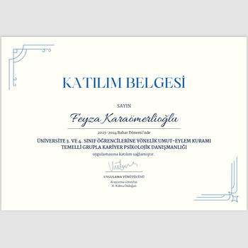 Lisans eğitimim süresince gönüllü olarak liselerde ve ilkokulda staj yaptım. Yetkinliğimi arttırmak ve danışanlarıma daha iyi bir hizmet sunabilmek için Oyun Terapisi Eğitimi ve Çözüm Odaklı Kısa Süreli Terapi Eğitimi aldım. Hala da alanımda profesyonel hocalarımdan eğitim alarak gelişmeye devam etmekteyim. Şu anda Rehber Klinikte Temel Psikoloji Eğitimi(BDT, Mindfulness Temelli Terapi, Sanat Terapisi, Spor Psikolojisi Eğitimi) alarak stajıma devam etmekteyim. Bir psikolojik danışman olarak vizyonum, etik değerler ışığında danışanlarıma yaşadıkları zorlu yaşam olaylarında yardımcı ve destek olmak.