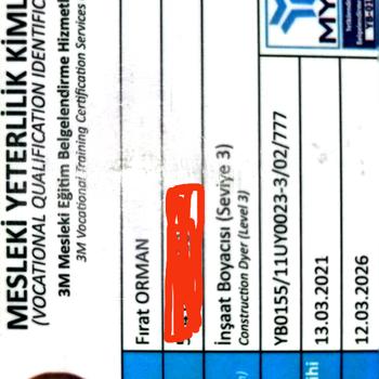 MYK'LI MESLEKİ YETERLİLİK BELGESİ MEVCUT.BOYACI SON SEVİYE USTALIK BELGESİ MEVCUT.TEMUZ GÜZEL İŞÇİLİĞİMİZ VAR...