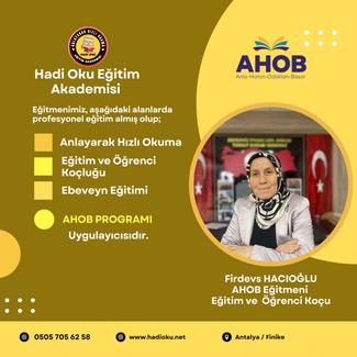 Anlayarak Hızlı okuma dersleri ile öğrencilerin sınavlarda ihtiyacı olan paragraf sorularını çözmede ,dikkat odağını geliştirmede ,zamanı etkili kullanmada,öğrencinin mizacını tespit ederek okuma metodu belirmede öğrencinin moral motivasyonunu yüksek tutmada yardımcı oluyorum. E-devlet onaylı Öğrenci koçluğu Ebeveyn koçluğu AHOB Eğitmen Eğiticisi AHOB uygulayıcısı belgelerim vardır