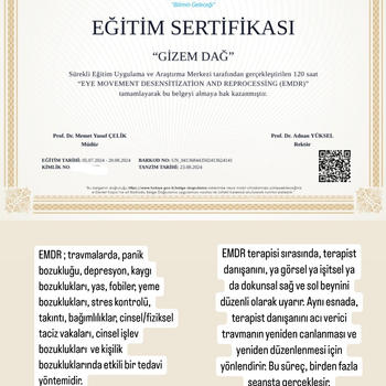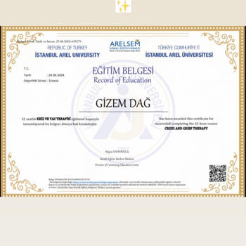 Merhaba ben Psikolog Gizem Dağ. Gümüşhane Üniversitesi Psikoloji lisans sürecimde İzmir,İstanbul ve Trabzon’da özel ve devlet kurumlarında stajlarımı tamamlayıp çeşitli alanlarda gözlem yapma fırsatım oldu. Aynı zamanda alanda uzmanlaşmış değerli hocalarımız ile çocuk,ergen ve yetişkin danışmanlığı üzerine pek çok seminer,sertifika ve eğitim programları ile ruh sağlığı alanında kendimi geliştirmeye devam etmekteyim. Şu anda online ve yüz yüze terapi hizmeti vermekteyim.