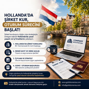 Schengen bölgesi ülkeleri için turistik, aile ziyareti, ticari ziyaret vizelerinde erken randevu hizmeti ve evrak hazırlama hizmetleri sunmaktayız. Hollanda expat vizesi ile oturum ve çalışma izni başvurusu süreci yönetimi hizmeti vermekteyiz. Hollanda şirket kurulumu hizmeti ile birlikte oturum ve çalışma izni başvuru süreci danışmanlık ve süreç yönetimi hizmeti vermekteyiz.