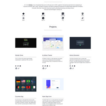 Merhaba! Ben Görkem, 4 yıllık deneyime sahip bir frontend geliştiriciyim. Web sitenizi kullanıcı dostu, modern ve estetik bir şekilde tasarlamak için buradayım. HTML, CSS, JavaScript ve popüler frontend framework'leri konusunda uzmanım ve projelerinizi en iyi şekilde hayata geçirmek için son teknolojileri kullanıyorum.