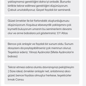 Merhabalar, Psikolojik danışmanlık alanında edindiğim klinik deneyim ve profesyonel yaklaşımımla, bireylerin yaşam kalitelerini artırmak ve içsel kaynaklarını güçlendirmek amacıyla çalışmalarımı sürdürmekteyim. Çocuk, ergen ve yetişkin danışanlara yönelik bireysel terapi, aile danışmanlığı ve psikoeğitimsel destek sunmaktayım. Etik ilkeler ve bilimsel yöntemler ışığında, danışan odaklı ve ihtiyaç temelli bir yaklaşım benimsiyorum. Uzmanlık Alanlarım Çocuklarla Çalışma Konuları: Tik Bozuklukları Enürezis (Alt Islatma) ve Enkoprezis Aile Dinamiğinin Çocuk Psikolojisine Etkileri Çocuklarda Cinsel Kimlik Gelişimi ve Sağlıklı Cinsel Eğitim Gelişimsel Tarama ve Değerlendirme Özgül Öğrenme Güçlüğü (Disleksi, Diskalkuli vb.) Okul Reddi ve Okul Kaygısı Akran İlişkilerinde Yaşanan Sorunlar Davranış ve Uyum Problemleri Ergenlerle Çalışma Konuları: Öfke Kontrol Güçlükleri Duygusal Dalgalanmalar ve Dürtüsellik Sosyal Kaygı ve İçe Kapanıklık Akademik Motivasyon Eksikliği Aile-Ergen Çatışmaları Kimlik Karmaşası ve Benlik Algısı Dijital Bağımlılık ve Teknoloji Kullanımı Kendine Zarar Verici Davranışlar Yetişkinlerle Çalışma Konuları: Depresif Bozukluklar Anksiyete (Kaygı) Bozuklukları Öfke Yönetimi ve Duygu Düzenleme Yeme Bozuklukları (Anoreksiya, Bulimiya, Tıkınırcasına Yeme) Travma Sonrası Stres Bozukluğu (TSSB) Obsesif-Kompulsif Bozukluk (OKB) Bağımlılık (Madde, Alkol, Davranışsal Bağımlılıklar) İlişki ve İletişim Problemleri Yaşam Geçişlerine Uyum Süreçleri Terapi Yaklaşımlarım: Bilişsel Davranışçı Terapi (BDT), Şema Terapi, Çözüm Odaklı Terapi gibi kanıta dayalı yöntemlerle çalışmaktayım. Her danışanın özgün ihtiyaçları doğrultusunda bütüncül ve kişiselleştirilmiş müdahaleler planlamaktayım. Sağlıklı bir ruh hali ve dengeli bir yaşam yolculuğunda sizlere destek olmaktan memnuniyet duyacağım. "İyileşme, kendinize verdiğiniz en değerli hediyedir."
