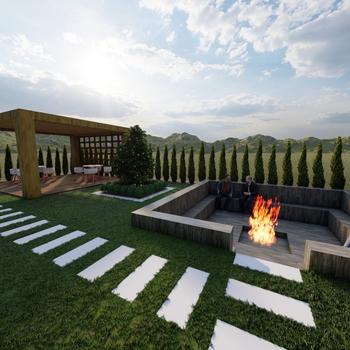 Peyzaj projesi ve uygulama Ahşap çocuk oyun grubu Bunglov Tiny House Peyzaj tasarımı Ahşap saksılık Ahşap bank Sezlong Bitkisel tasarım Yapısal tasarım