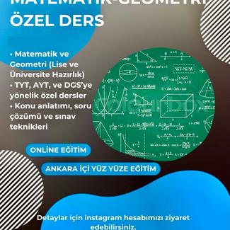 Matematik Geometri Özel Ders Ortaokul, Lise, TYT–AYT hazırlık Konu anlatımı bol soru çözümü Sınavda zaman kazandıran teknikler Online veya yüz yüze ders imkanı Öğrenciye özel program Anlaşılır, motive edici ve hedef odaklı dersler.