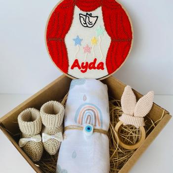 İçeriğinde kişiselleştirilmiş ve el işi ürünler de bulunan hediye setleri tasarlıyor, hem bireysel hem de kurumsal olarak hizmet veriyoruz. Bebek odaları için ya da dekorasyon amaçlı kişiye özel punch nakışı tablolar için irtibata geçebilirsiniz.