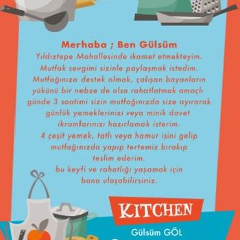 Merhaba ben Gülsüm Eskişehir Yıldıztepe de ikakmet ediyorum çalışan annelerin yükünü hafifletmek amaçlı evinizde sizin mutfağınızda 3 saatimi ayırarak 4 çeşit yemek veya davet ikramliklarinizi hazırlamak istiyorum,bu keyfi yaşamak için benimle iletişime geçebilirsiniz
