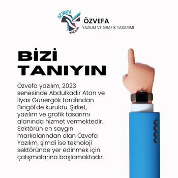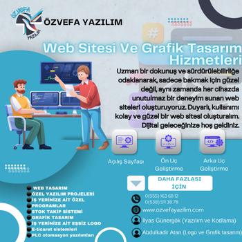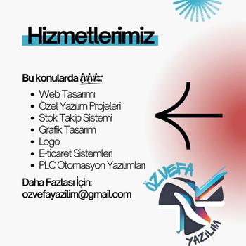 Yazılım sektöründe lider bir şirket olmak ve müşterilerimize en iyi hizmeti sunmak için sürekli olarak geliştiriyor ve büyüyoruz. Başarılı projelerle müşterilerimize değer katmayı hedefliyor ve müşteri memnuniyetini en üst seviyede tutmayı amaçlıyoruz aynı zamanda yazılım alanında ve grafik tasarım alanında dünya çapında tanınan ve saygı duyulan bir marka haline gelmeyi hedefliyoruz. Özvefa yazılım olarak bugünün teknolojisinin verimini arttırmayı amaç edinerek geleceğe emin adımlarla ilerliyoruz. Bizi seçerek farkı yaşayın. Hizmetlerimiz: WEB TASARIM ÖZEL YAZILIM PROJELERİ İŞ YERİNİZE AİT ÖZEL PROGRAMLAR STOK TAKİP SİSTEMİ GRAFİK TASARIM İŞ YERİNİZE AİT EŞSİZ LOGO E-ticaret sistemleri PLC otomasyon yazılımları