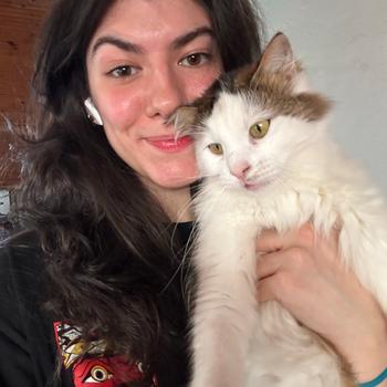 Hayvanları çok seviyorum, 2 yıllık veteriner teknikerliği bölümünden mezun oldum, eğitimime veterinerlik fakültesinde devam etmek istiyorum. 8 yıldır kedi bakıyorum ve şuanda da 2 tane kedim var.