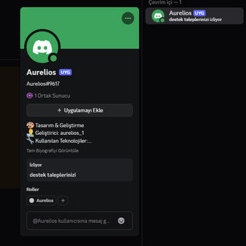 Merhaba, ben web tabanlı arayüzler ve özel Discord eklentileri üzerine çalışmalar yapıyorum. Kodlama bilgimle farklı sistemler geliştiriyorum. Basit, işlevsel ve amaca uygun yapılar oluşturmak benim için önemli.