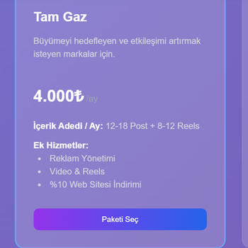 Sosyal Media Master olarak, müşterilerimize en iyi fiyat avantajı ile yüksek kaliteyi bir arada sunuyoruz. Profesyonel ekibimizle; web sitesi tasarımı, sosyal medya yönetimi ve dijital pazarlama alanlarında markanızı bir üst seviyeye taşıyoruz. Amacımız, sadece güzel görünen değil, aynı zamanda hedef kitlenize ulaşan ve sonuç getiren projeler üretmek. Kaliteyi uygun fiyata almak, şimdi mümkün! Bizimle çalışın, markanızı dijital dünyada parlatın. sosyalmediamaster