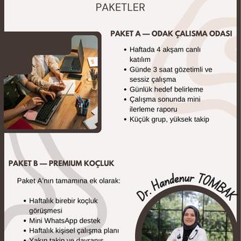 Merhaba, ben Dr. Handenur. Öğretmen Lisesi mezunu bir tıp doktoruyum. Öğrencilerin düzenli, motive ve verimli bir çalışma rutini oluşturması için kişiye özel çalışma koçluğu ve mentörlük sunuyorum. Programım neleri içeriyor? • Haftalık kişiye özel çalışma planı • Online odak etütleri • Günlük ilerleme takibi • Soru/ödev kontrolü • Disiplin ve motivasyon desteği Odak noktam sadece ödev veya ders kontrolü değil; öğrencinin tüm çalışma düzenini analiz edip kalıcı ve sürdürülebilir başarı alışkanlıkları kazandırmaktır. Kısa bir tanışma görüşmesi ile öğrenciniz için en uygun çalışma modelini belirleyebiliriz.