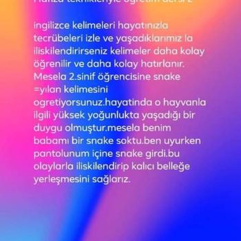23 Yıllık öğretmenim.Hafıza teknikleri ile desteklenmiş şekilde Anasınıfı, ilkokul ve ortaokul õğrencilerine yönelik gramer bilgisi,hikaye okuma ve okul derslerine yönelik çalışmalar yapmaktayım.