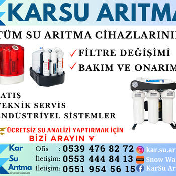 Tüm su arıtma cihazlarının filtre değişimi ,bakım ve onarımı,teknik sevis ve satışı yapılır.