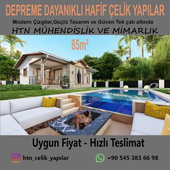 *3D modelleme *Gerçekçi render ve animasyon *Detaylı üretim çizimleri *Depreme dayanıklı çelik evlerin üretimi *Tiny house projeleri be üretimi *Villa ve yaşam yapıları üretimi HTN Mühendislik & Mimarlık, bulunduğu şehirle sınırlı kalmadan Türkiye’nin her noktasına çelik yapı tasarımı ve üretim yapmaktadır