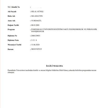 Merhaba ben Psikolojik Danışman Hilal Güneş. Bireysel psikolojik danışmanlık, oyun terapisi, dikkat geliştirme programı tercih ve kariyer danışmanlığı, eğitim danışmanlığı hizmetleri, sunuyorum. İhtiyacınız olan konuyla ilgili iletişime geçebilirsiniz.