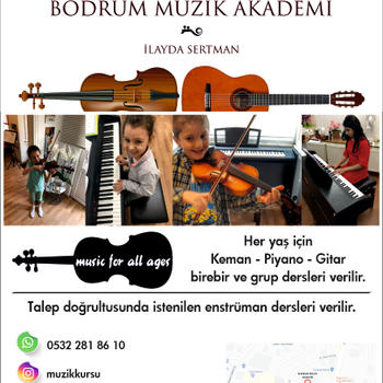 Bodrum Müzik Akademi Her yaş için Keman - Piyano - Gitar birebir ve grup dersleri verilir. -Talep doğrultusunda istenilen enstrüman dersleri verilir. iletişim : instagram Adres : Yokuşbaşı mahallesi.Muğla / Bodrum
