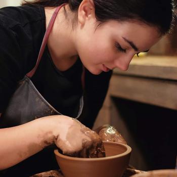 1993 Ankara doğumluyum. Halaları ressam, dayıları müzisyen olan bir çocuk olarak sanatla iç içe bir ailede büyüdüm. Lise eğitimimi Ankara'da, Gaziosmanpaşa Anadolu Meslek Lisesi, Grafik Tasarım ve Fotoğrafçılık bölümünde tamamlayıp, 2011 yılında Hacettepe Üniversitesi Güzel Sanatlar Fakültesi Seramik bölümünü kazandım ve bölümümden onur öğrencisi olarak mezun oldum. UNICEF ve UNHCR 'ın projelerinde özellikle kadın ve çocuklara seramik şekillendirme ve renklendirme eğitimleri verdim, bunun dışında seramik fabrikalarında, seramik ve mozaik atölyelerinde çalıştım. Şu an güncel olarak kendi atölyemde yetişkinler ve çocuklarla birebir ya da küçük gruplar halinde, seramik elle şekillendirme, çömlekçi tornası, bisküvi reklendirme, sırlama, seramik tarihi, seramik kimyası dersleri veriyorum. Her bir ders iki saat sürmektedir ve birebir derslerin içeriği öğrencinin talebine, dikkatine ve hayal gücüne bağlı olarak şekillendirilmektedir ve atölyede kullanılacak çamur, boyalar, torna, fırın gibi ekipmanlar tarafımızdan sağlanarak size sadece gelip seramiğin keyfini sürmek kalmaktadır.