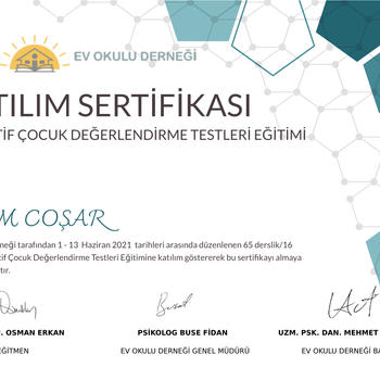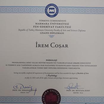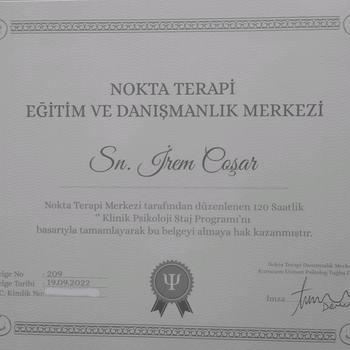 Gebze Anibal Anadolu Lisesi’ni tamamladıktan sonra Marmara Üniversitesi Psikoloji bölümünden onur derecesiyle mezun olmuştur. Lisans dönemi boyunca aktif olarak eğitimlere katılmış ve kendini bu alanda yetkin hale getirmiştir. Gebze İlçe Milli Eğitim Bakanlığı ve Nokta Terapi Danışmanlık Merkezi’nde stajlarını tamamlamıştır. Özel bir kreşte psikolog olarak çalışarak gerekli gözlem ve deneyime sahip olmuştur. Şuan da Nokta Terapi Danışmanlık Merkezi’nde çocuk, ergen ve yetişkinler için danışmanlık hizmeti vermektedir. Aldığı Sertifikalardan Bazıları Şu Şekildedir: 1) EMDR- Davranış Bilimleri Enstitüsü 2) “Bilişsel Davranışçı Oyun Terapisi” eğitimi uygulayıcı sertifikası (Uzm. Psk. Bengü Aksekili) 3) “Kısa Süreli Çözüm Odaklı Terapi” eğitimi uygulayıcı sertifikası (Prof. Dr. Başaran Gençdoğan) 4) “Objektif Çocuk Değerlendirme Testleri “ eğitimi uygulayıcı sertifikası -AGTE -Bender Gestalt Görsel Motor Algı Testi -Metropolitan Okul Olgunluğu Testi -Gesell Gelişim Figürleri Testi, Porteus Labirentleri Testi -Kent EGY Testi, Frankfurter Dikkat/ Konsantrasyon Testi -Peabody Resim Kelime Testi -Goodenough- Harris Bir İnsan Çiz Testi 5) "Beck Envanterleri" (Depresyon, Anksiyete, Umutsuzluk ve İntihar Ölçekleri) uygulayıcı sertifikası 6) “Psikologlar için DEHB eğitimi” katılım belgesi (Prof. Dr. Bengi Semerci)