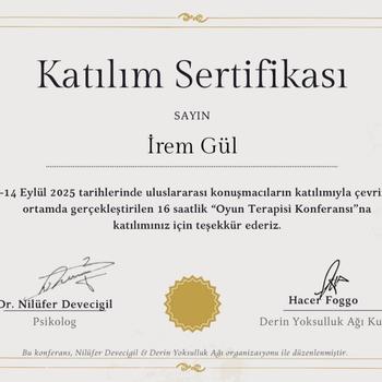 Psikolog & Aile Danışmanı İrem Gül Çankaya Üniversitesi Psikoloji (İngilizce) mezunuyum. Eğitim ve mesleki gelişim sürecimde, farklı kurumlarda ve devlet hastanesinde alanında uzman isimlerle çalışma ve staj deneyimleri kazandım. BDT eğitimimi Prof. Dr. Hakan Türkçapar, Şema Terapi ve EMDR eğitimlerimi Doç. Dr. Levent Yaycı, Aile Danışmanlığı eğitimimi ise Prof. Dr. Mehmet Zihni Sungur ile tamamladım. İleri düzey Aile Danışmanlığı eğitimimi de Prof. Dr. Hakan Türkçapar öncülüğünde alanda değerli hocalarımın katkıları ile tamamladım. Bunlara ek olarak: Çözüm Odaklı Terapi, ACT, Travma ve Krize Müdahele, Oyun Terapisi, Resim Analizi, Masal Terapisi eğitimlerini aldım ve mesleki gelişimime sürekli katkı sağlamaya devam ediyorum. Ergenler, yetişkinler ve çiftlerle bireysel & grup danışmanlıkları yürütüyor; çocuklarla oyun terapisi ve duygusal destek çalışmaları gerçekleştiriyorum. Bilimsel temelli yaklaşımlar ve etik değerler doğrultusunda; danışanlarıma güvenli, destekleyici ve çözüm odaklı bir alan sunuyorum. Amacım, bireylerin içsel güçlerini fark etmelerine ve hayatlarında sürdürülebilir bir değişim yaratmalarına eşlik etmek.