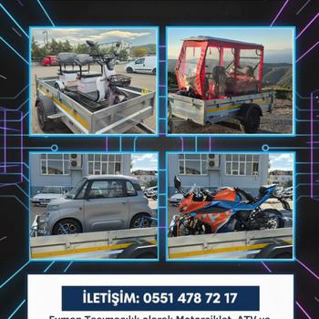 Çeki Demirli Römorklu aracımla motorsiklet atv elektrikli üç tekerlekli araçların taşımacılığını yapmaktayım