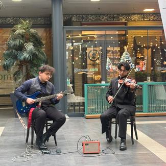 Profesyonel sahne deneyimine sahip iki müzisyenden oluşan bir ekibiz. Geniş repertuarımız ve farklı tarzlara olan hâkimiyetimizle, dinleyiciyle güçlü bir bağ kurmayı hedefliyoruz. Ekip üyelerimizden biri hem kemanist hem de solist olarak sahne almaktadır. Diğer üyemiz ise akustik ve elektro gitar performanslarında deneyimli bir gitaristtir. İstanbul Büyükşehir Belediyesi’ne bağlı çeşitli sahnelerde canlı müzik performansları gerçekleştirmiş bulunmaktayız. Bunun yanı sıra, özel düğün organizasyonlarında, restoranlarda ve çeşitli etkinliklerde aktif olarak sahne almaya devam ediyoruz. Repertuarımız, etkinliğin atmosferine uygun olarak şekillendirilebilir; hem enstrümantal hem de vokalli performanslar sunmaktayız.