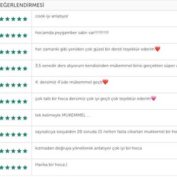 Yıldız Teknik Üniversitesi Sosyal Bilgiler öğretmenliği bölümünden derece ile 3. olarak mezun oldum. Yaklaşık 6 yıldır online olarak özel ders vermekteyim ve bu süreçte pek çok LGS, YKS ve ara sınıf öğrencisi ile çalıştım. Öğrencilerime etkin bir şekilde yardımcı olabilmek adına diksiyon, beden dili ve etkili ders anlatım teknikleri gibi alanlarda sertifikalı eğitimler aldım. Aktif olarak online sözel ders öğretmenliği ve öğrenci koçluğu yapmaktayım.