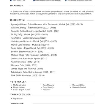 20 yıllık mutfak şefiyim talep durumunda yardımcı olabilirim. Her alanda tecrübem mevcuttur.