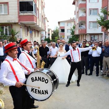 BANDO KENAN | PROFESYONEL EĞLENCE En mutlu anlarınızda işinizi şansa bırakmayın; tecrübemiz ve enerjimizle organizasyonunuzun tüm sorumluluğunu üstleniyoruz! Türkçe popüler oyun havaları, çiftetelliler ve tüm yöresel ezgilere (Balkan, Halay, Karadeniz) yer verdiğimiz geniş repertuarımızla eğlenceyi eksiksiz bir şekilde yönetiyoruz. 2007 yılından bu yana sektörde kazandığımız uzmanlıkla, her anınıza profesyonel bir dokunuş katıyoruz. Kırmızı askı, papyon ve şapkadan oluşan takım kıyafetlerimizle hem şık bir görünüm hem de yüksek bir enerji sunuyoruz. Saksafon, trompet ve davulun başrolde olduğu güçlü kadromuzla gelin alma, düğün ve tüm davetlerinizde profesyonel çözüm ortağınızız.