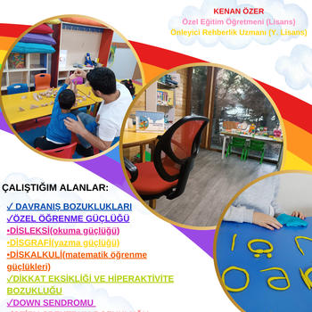 ✓Lisans: Özel Eğitim Alan Öğretmeni (Atatürk üniversitesi) ✓Yüksek Lisans: Önleyici rehberlik ve psikolojik danışmanlık ( Sakarya üniversitesi) ✓ ABA Eğitim uygulamaları ✓Gömülü öğretim ✓Fırsat Öğretimi ve daha bir çok uygulama ile bireysel destek sağlıyorum.