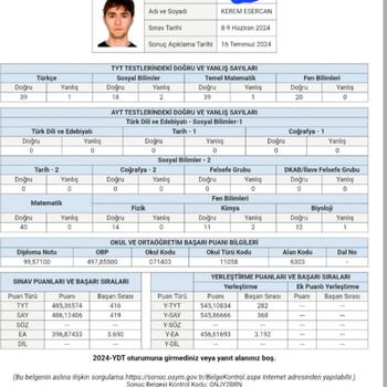 Merhaba, ben Kerem. Türkiye'nin sayılı liselerinden olan Antalya Yusuf Ziya Öner Fen Lisesi'nden dönem ikincisi olarak mezun oldum ve aynı sene girdiğim YKS sınavında sayısal üçyüzaltmışsekzincisi olma başarısı gösterdim. Şu anda Cerrahpaşada ingilizce tıp eğitimime devam etmekteyim. Biyolojiye ve genel anlamıyla tıbba çocukluğumdan beri ilgim var, lise hayatım da arkadaşlarıma derslerinde yardım ederek geçti. Biyolojide istediğin netlere çıkmak benimle çok kolay olacak!
