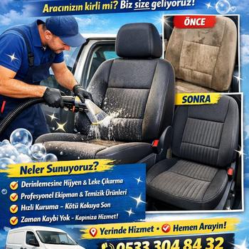 YERİNDE OTO KOLTUK YIKAMA HİZMETİ Aracınızın iç temizliğini profesyonel ellere bırakın Yerinde oto koltuk yıkama hizmetimiz sayesinde aracınızı hiçbir yere götürmeden, bulunduğunuz konumda detaylı temizlik sağlıyoruz. Derinlemesine hijyen ve leke çıkarma Özel ekipman ve profesyonel temizlik ürünleri Hızlı kuruma – kötü kokuya son Aracınıza zarar vermeden titiz uygulama Zaman kaybı yok, hizmet ayağınıza geliyor Koltuklarınızda oluşan kir, leke ve bakterileri yok ederek aracınızı ilk günkü temizliğine kavuşturuyoruz. Yerinde hizmet – randevu ile çalışılır Detaylı bilgi ve randevu için bizimle iletişime geçin Temiz araç, konforlu sürüş