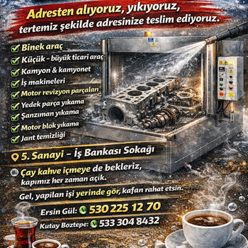 Ersin Oto ve Parça yıkama servisi Yaptığımız işi temiz, düzgün ve söz verdiğimiz şekilde yaparız Müşteriyi yormadan, işi uzatmadan çözüm odaklı çalışırız İşi yarım bırakmayız Uygun fiyat net iletişim Önce dinleriz sonra en doğru çözümü sunarız. Detayları konuşmak için mesaj atmanız yeterli