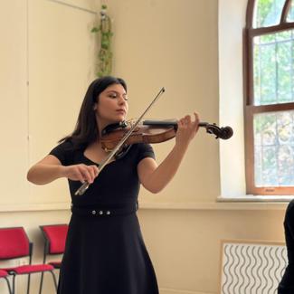 Müzik ve Sahne Sanatları Fakültesi’nde keman öğrencisiyim. Yaklaşık 7 yıldır keman çalıyorum. Her seviyede keman dersi verebileceğime inanıyorum. Derslerde sabırlı, anlaşılır ve sakin bir şekilde ilerlemeyi tercih ederim. Öğrencinin kendi hızına ve ihtiyaçlarına göre uyum sağlamaya özen gösteririm. Derslerin keyifli, rahat ve verimli geçmesi benim için çok önemli. Memnuniyet, karşılıklı saygı ve güzel bir iletişim her şeyden önce gelir. Eğer kafanızda sorular varsa ya da denemek isterseniz, her zaman yazabilirsiniz. Yardımcı olmaktan memnuniyet duyarım.